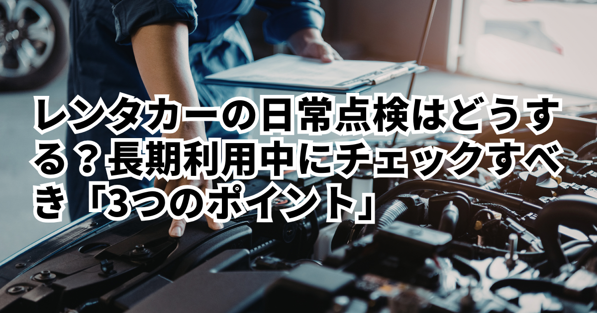 レンタカーの日常点検はどうする?長期利用中にチェックすべき「3つのポイント」はじめに マンスリーレンタカーを長期間利用していると、「自分の車と同じように扱っているけれど、点検はどうすればいいの?」と不安に思うことはありませんか?日常の忙…