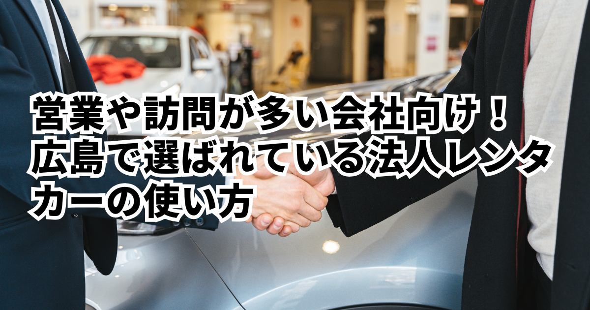 営業や訪問が多い会社向け!広島で選ばれている法人レンタカーの使い方はじめに 営業や訪問が多い会社にとって、「いかに効率よく移動するか」は売上や生産性に直結する大きなテーマです。社用車を何台も保有している企業もあれば、営業スタッ…