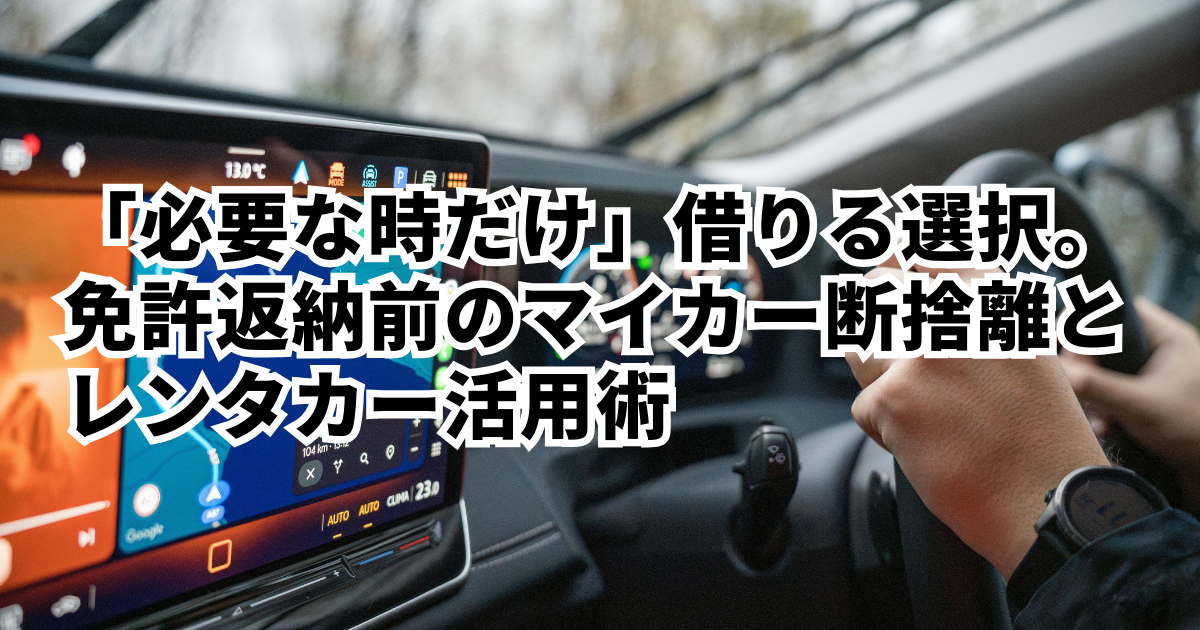 【シニア世代の運転】「必要な時だけ」借りる選択。免許返納前のマイカー断捨離とレンタカー活用術はじめに 広島市内で長年マイカーを運転してきたシニア世代の皆様、あるいはそのご家族様、「最近、運転頻度が減ったけれど維持費だけがかさんでいる」「免許返納も視野に…