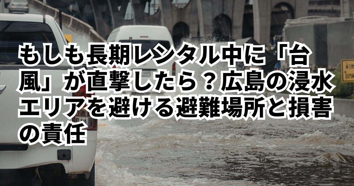 もしも長期レンタル中に「台風」が直撃したら?広島の浸水エリアを避ける避難場所と損害の責任はじめに 広島市内でマンスリーレンタカーを長期利用している際、避けて通れないのが台風や集中豪雨のリスクです。広島は過去にも甚大な土砂災害や浸水被害を経験しており…
