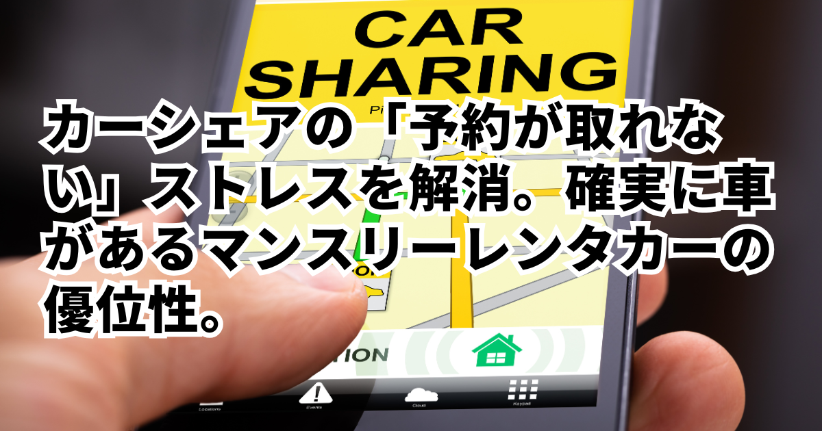 カーシェアの「予約が取れない」ストレスを解消。確実に車があるマンスリーレンタカーの優位性。はじめに 広島市内でカーシェアリングを利用しようとした際、週末や雨の日、あるいは急な用事の時に「すべて予約済み」で困った経験はありませんか?短時間利用に便利なカ…