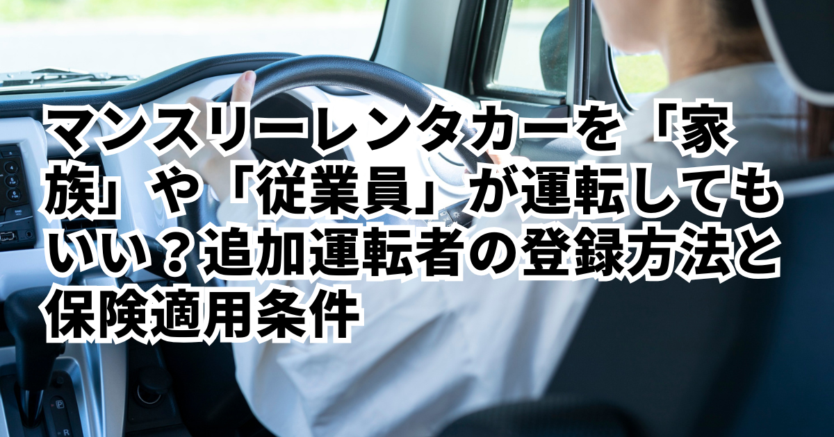 マンスリーレンタカーを「家族」や「従業員」が運転してもいい?追加運転者の登録方法と保険適用条件はじめに 広島市内でマンスリーレンタカーを借りる際、自分一人だけでなく「家族にも運転を代わってもらいたい」「従業員に外回りをお願いしたい」という場面は多いもので…