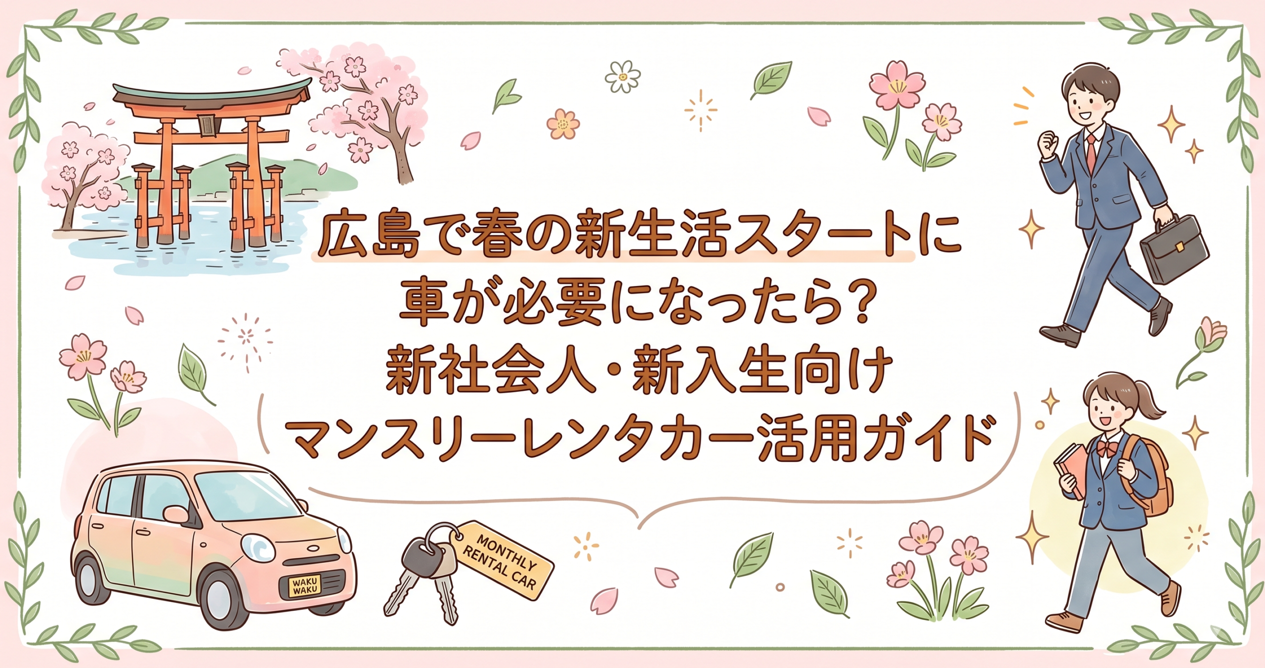 広島で春の新生活スタートに車が必要になったら?新社会人・新入生向けマンスリーレンタカー活用ガイドはじめに 4月は新しい生活のスタートラインです。広島市内で就職した新社会人、市内の大学や専門学校に進学した新入生の中には、「通勤・通学に車が必要だとわかったけれ…