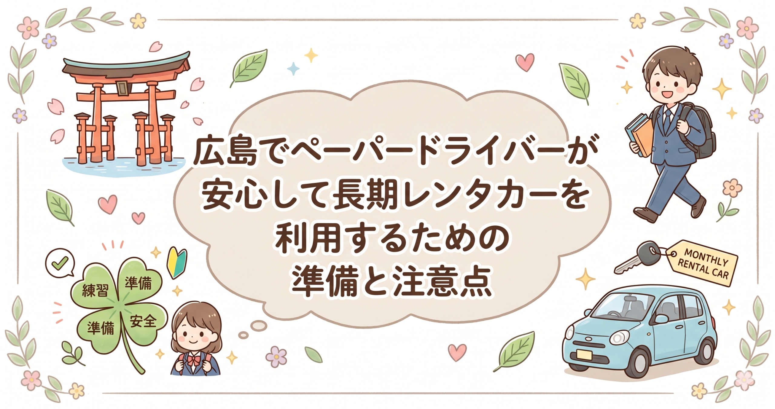 広島でペーパードライバーが安心して長期レンタカーを利用するための準備と注意点はじめに 「免許は持っているけれど、取ってからずっと運転していない…」というペーパードライバーの方は、実は多いものです。広島市内は公共交通機関がある程度整ってい…