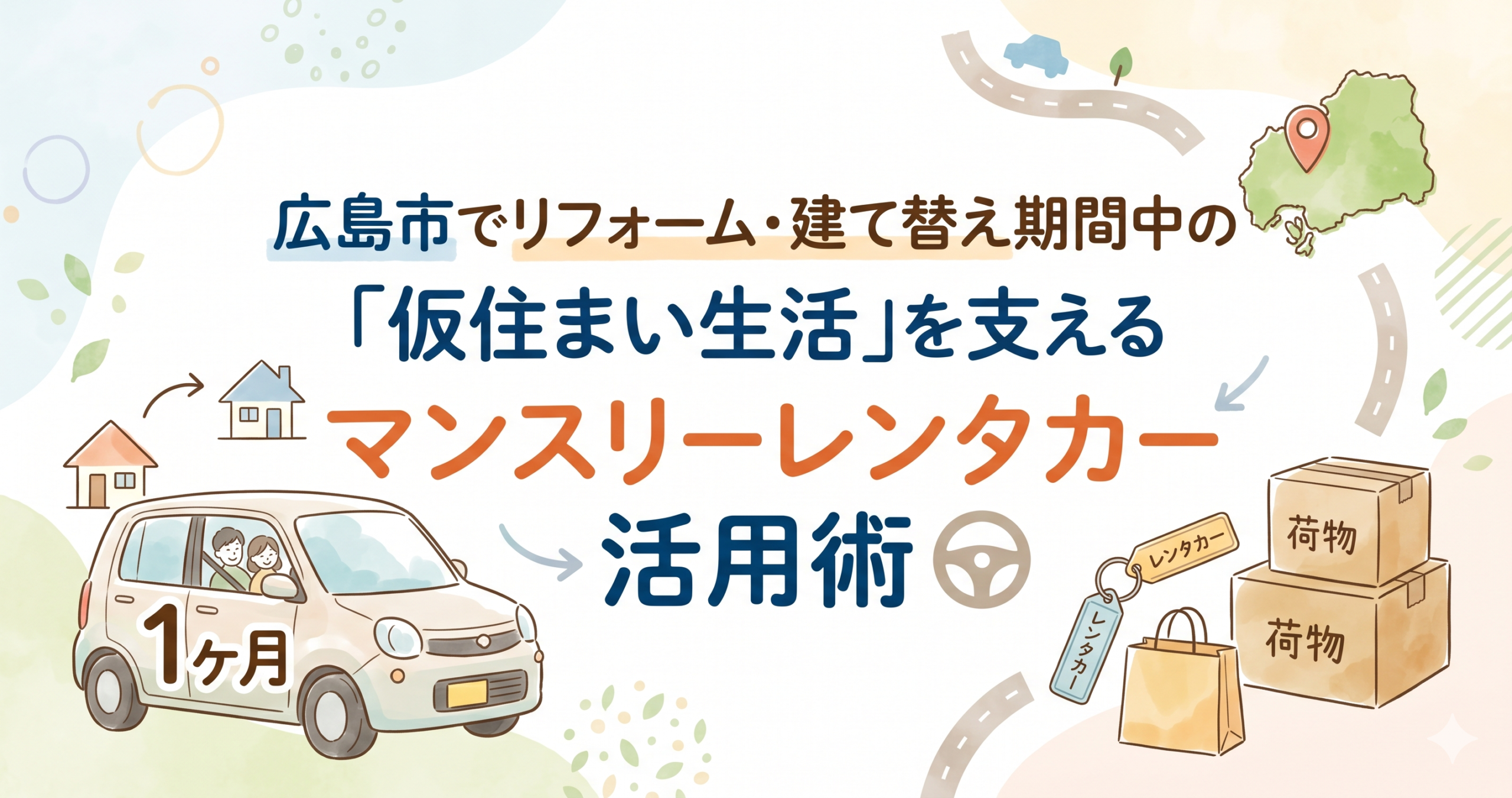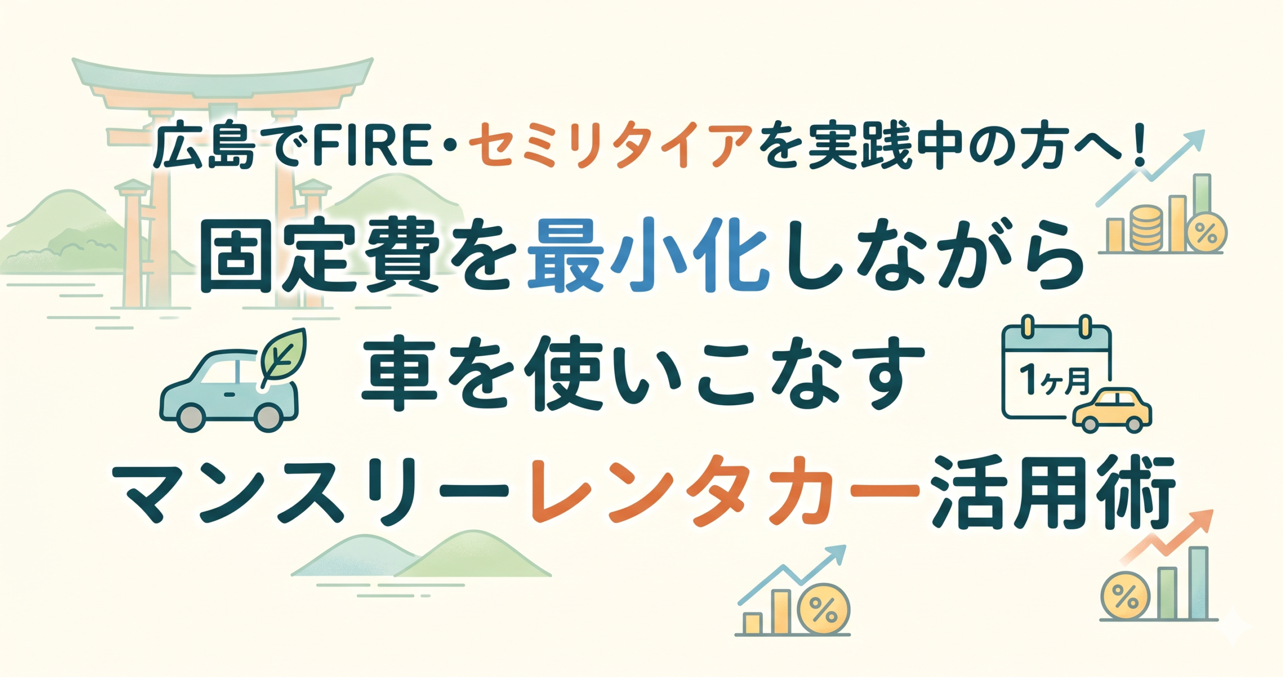 広島でUターン・実家同居を決めた方へ!生活環境が変わる時期に賢く車を確保するマンスリーレンタカー活用ガイドはじめに 都市部での生活から広島へUターンする、あるいは家族の事情で実家に戻って同居を始めるというライフチェンジは、住む場所だけでなく日常の移動手段も大きく変え…