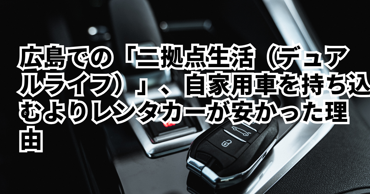 広島での「二拠点生活(デュアルライフ)」、自家用車を持ち込むよりレンタカーが安かった理由はじめに 広島市と他都市を行き来する「二拠点生活(デュアルライフ)」を始める際、移動手段の確保は避けて通れない問題です。多くの人が「今の自家用車を持ち込む」こと…