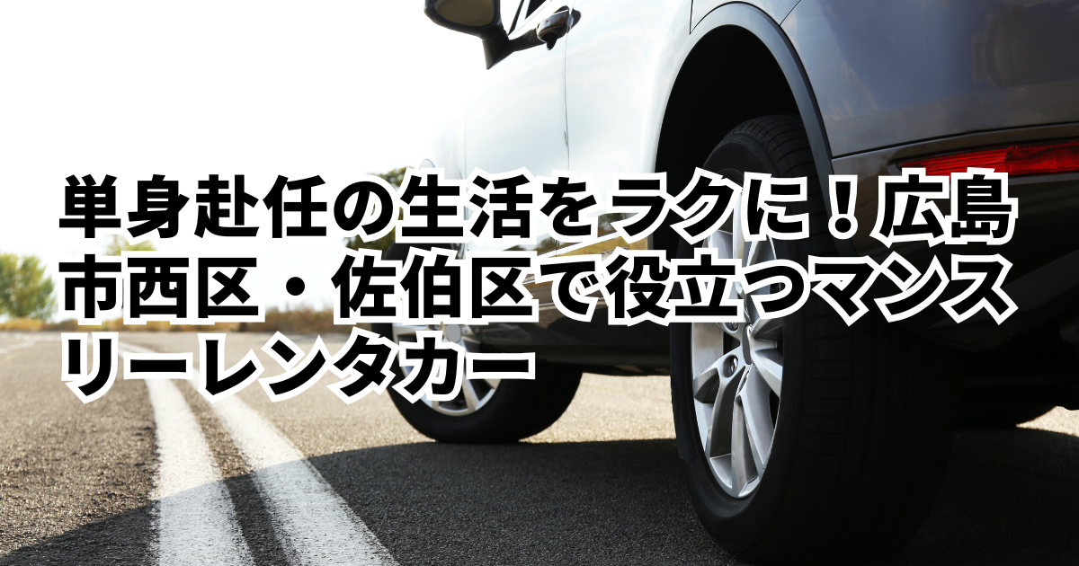 単身赴任の生活をラクに!広島市西区・佐伯区で役立つマンスリーレンタカーはじめに 突然の辞令で広島市への単身赴任が決まり、「土地勘もないし、車はどうしよう…」と迷われている方は多いのではないでしょうか。特に広島市西区・佐伯区は、市内…