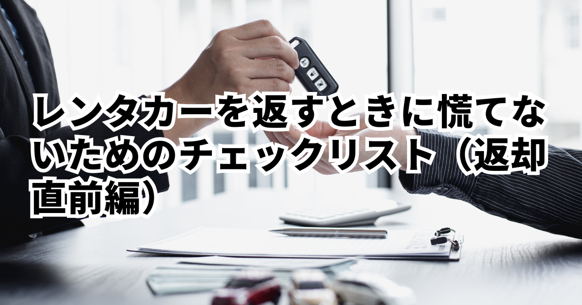 レンタカーを返すときに慌てないためのチェックリスト(返却直前編)はじめに レンタカーの返却は「最後に車を置いて鍵を返すだけ」と思われがちですが、実際は返却直前にやることが重なりやすく、焦りがミスにつながりやすい場面です。たと…