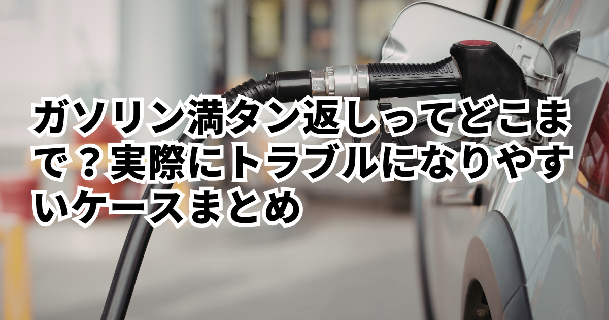 ガソリン満タン返しってどこまで?実際にトラブルになりやすいケースまとめはじめに レンタカーの返却で、いちばん「え、そうなの?」が起きやすいのがガソリンの精算です。満タン返しはルール自体は単純ですが、実際は「どのタイミングで」「どこ…