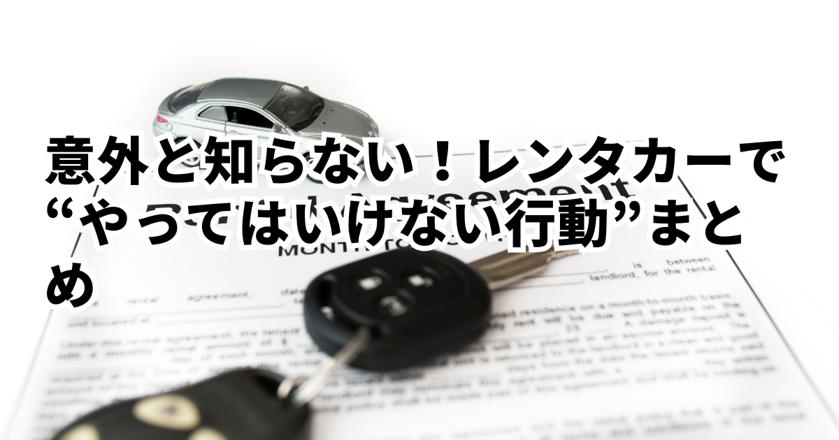 はじめに レンタカーは、自分の車と同じ感覚で使える便利なサービスです。一方で「やってはいけない行動」を知らないまま使うと、返却時の追加精算や補償の対象外、次に使…