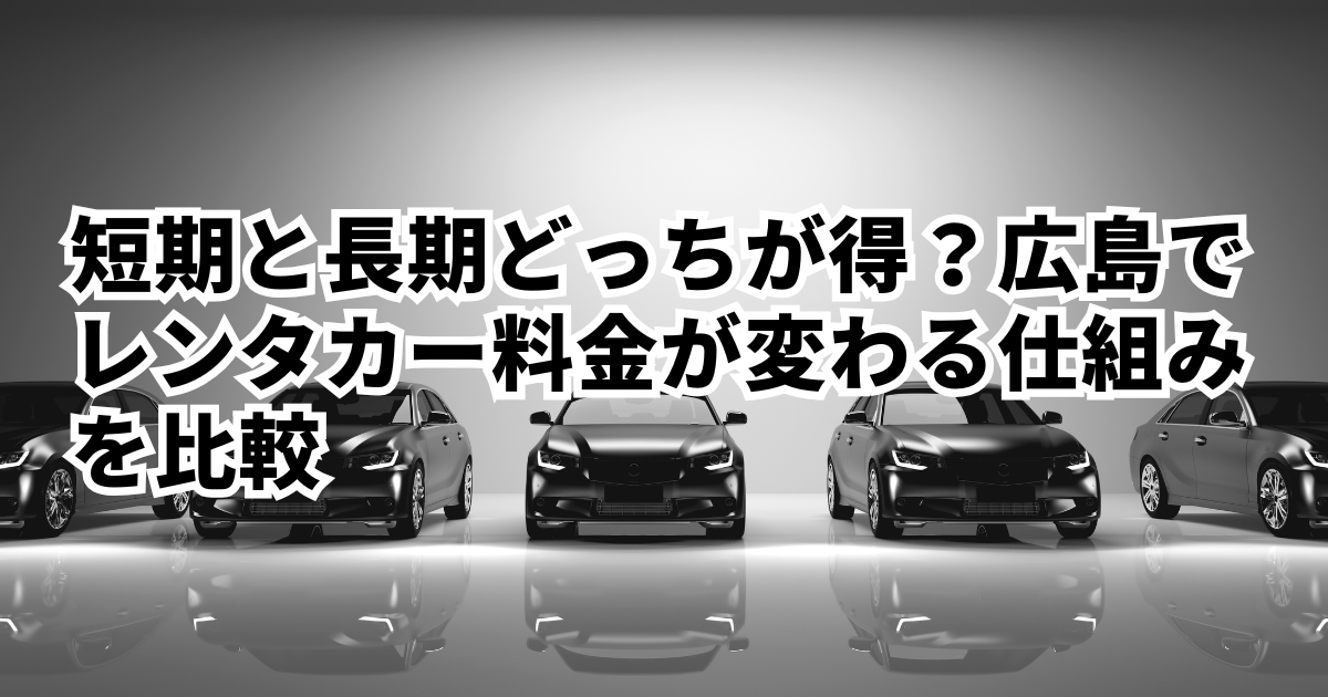短期は必要な日数だけ利用できて便利、長期は1日あたりの料金が下がって家計にやさしいという違いがあります。目的や利用日数に合わせて比較すれば、無駄な費用を抑えながら、広島で快適に車を利用することができます。料金だけでなく、補償内容やオプションも含めて確認することで、自分に合った最適なプランが見つかります。