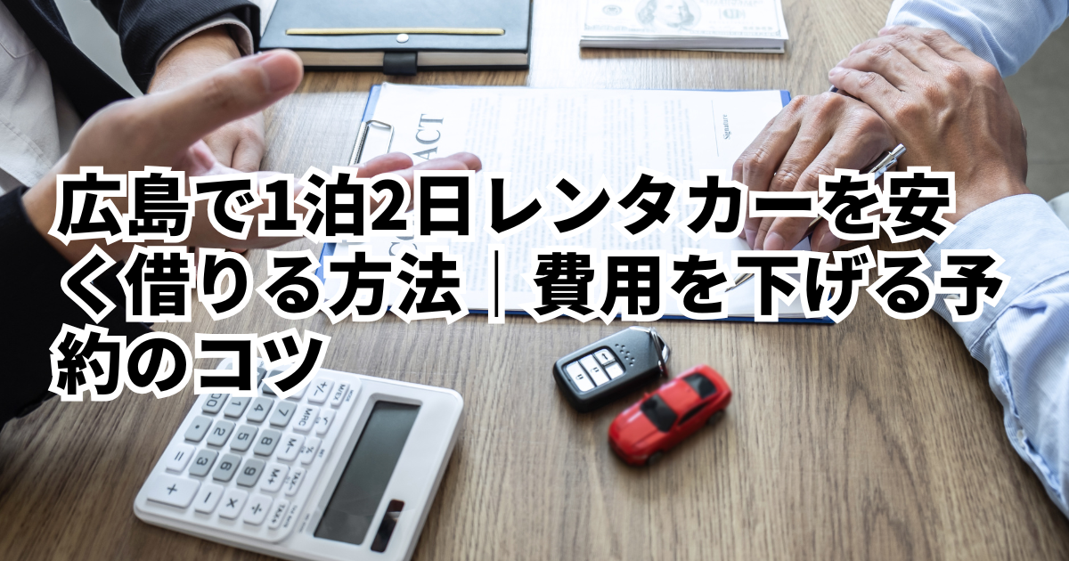 広島で1週間だけ車が必要になる理由はさまざまです。旅行や出張、帰省中の足として活用したい場面もあれば、車検や修理中の代車として使うケースもあります。短期間の利用だからこそ、できるだけ安く借りたいと考える方が多いのは自然なことです。レンタカー料金は「選ぶ車種」「予約方法」「時期」などで大きく変わります。この記事では、1週間レンタルの料金の仕組みと、費用を抑えるための具体的な方法をわかりやすく解説します。