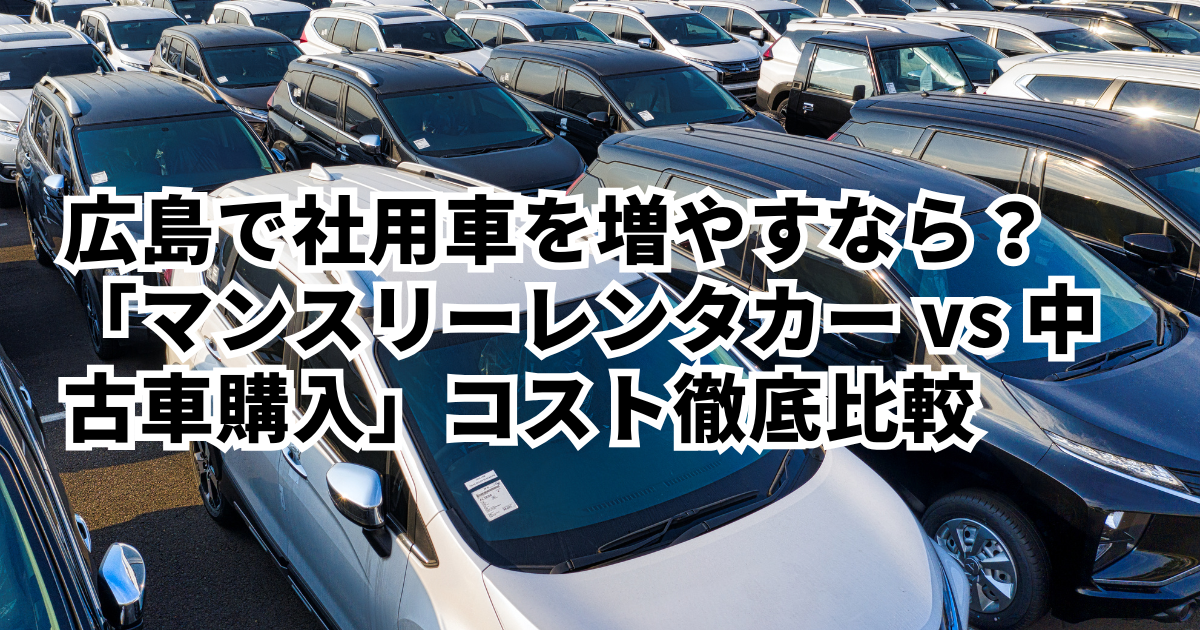 広島市内でビジネスを展開する企業の皆様、急な案件の受注や繁忙期、新入社員の入社などで「社用車が足りない」と頭を抱えていませんか?社用車を増やす際、真っ先に思い浮かぶのは「中古車の購入」かもしれません。しかし、近年の広島では、維持費や管理の手間を大幅に削減できる「マンスリーレンタカー」という選択肢が急速に注目を集めています。本記事では、広島の地域特性を踏まえながら、マンスリーレンタカーと中古車購入のコスト、利便性、リスクを徹底的に比較しました。どちらが貴社の利益を最大化させるのか、その答えを導き出す一助となれば幸いです。